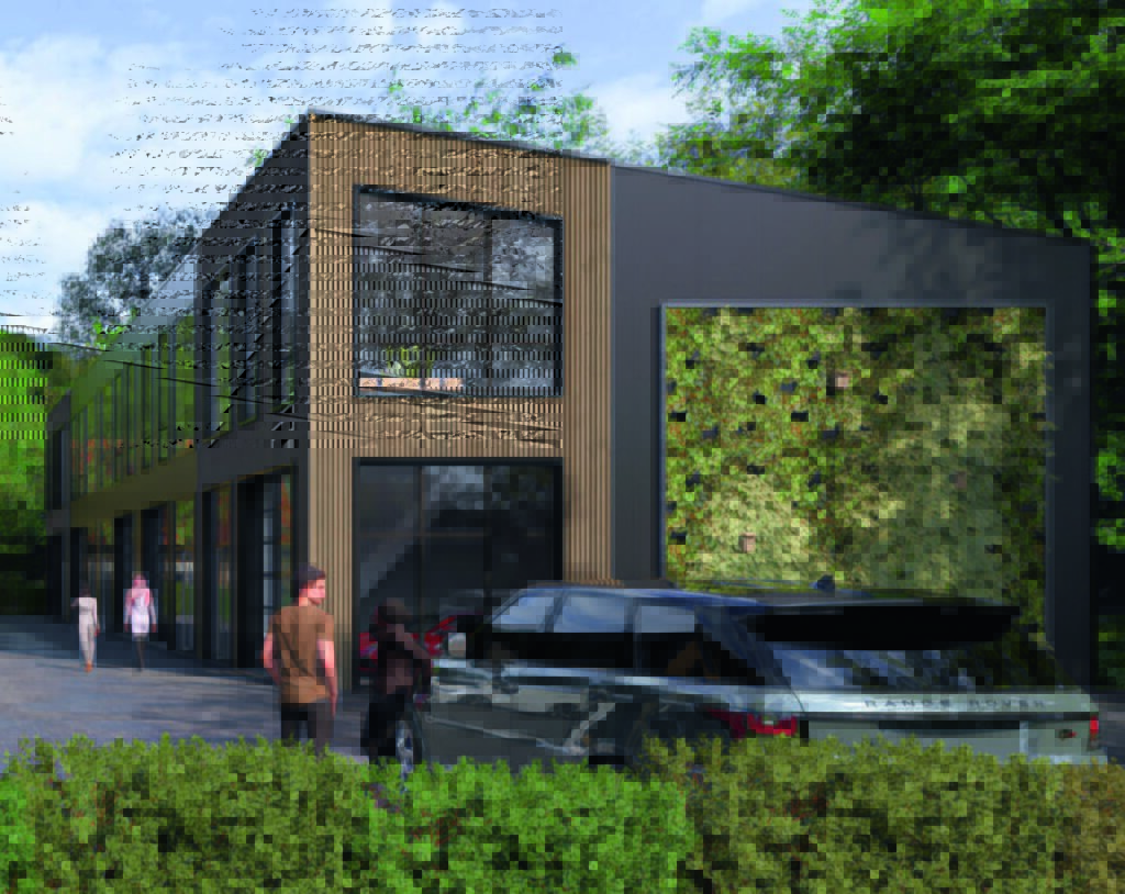 Type VII combineert het beste van twee werelden: de ruime opzet van Gebouw F (85 m² begane grond) met de zichtbaarheid en lichtinval van een hoekunit. De groene gevels, grote puien en landelijke houtlook maken dit de meest karakteristieke units op het businesspark.